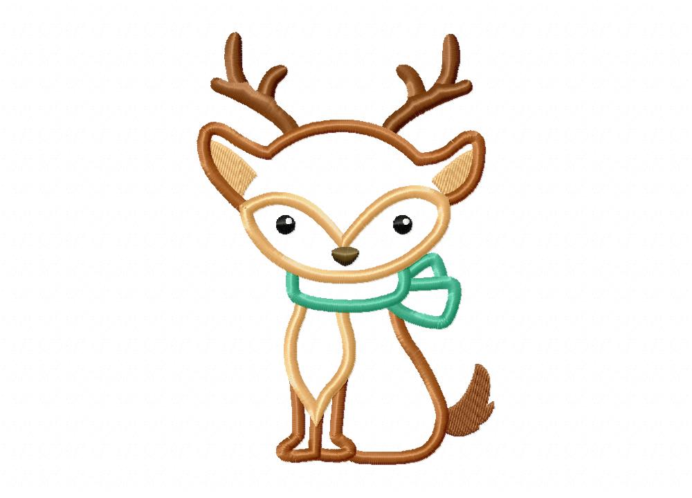 Cute Reindeer on Christmas Includes both Applique and Stitch Embroidery Design