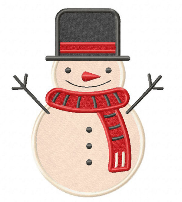 Cute Snow Man Includes Both Applique and Stitch Embroidery Design