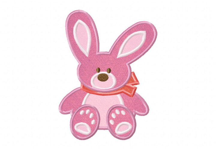 Delicate Pink Bear Includes Both Applique and Stitch Embroidery Design