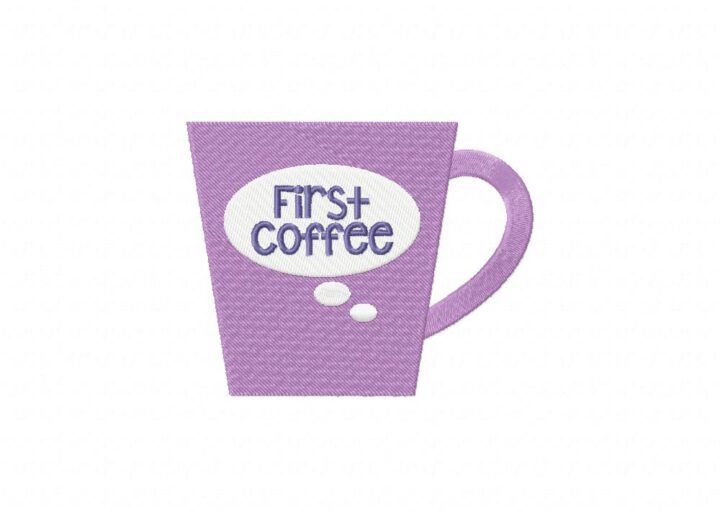 Kick start your day with thisĀ First Coffee Mug machine embroidery design!