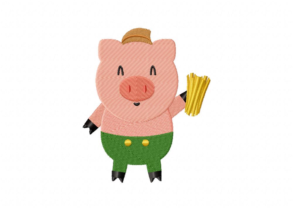 Stitch out this First Little Pig machine embroidery design and let's help them build a house!