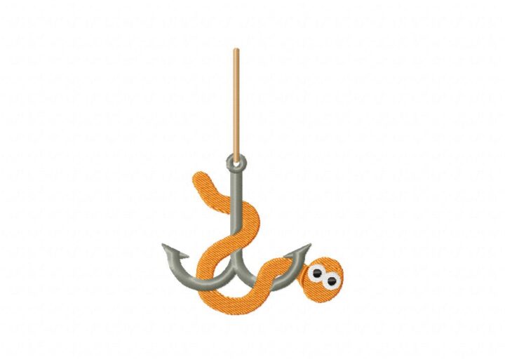 Make fishing fun with this Fish Hook And Orange Worm machine embroidery design!