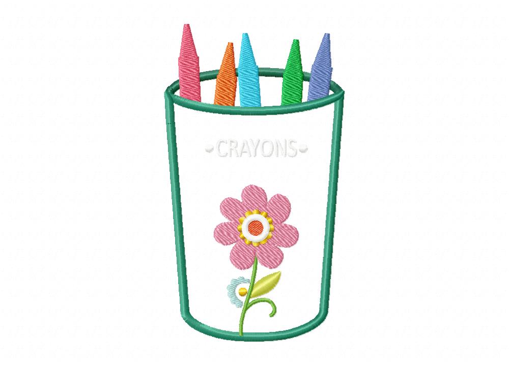 Art Tool Crayons Includes Both Applique and Stitch Embroidery Design