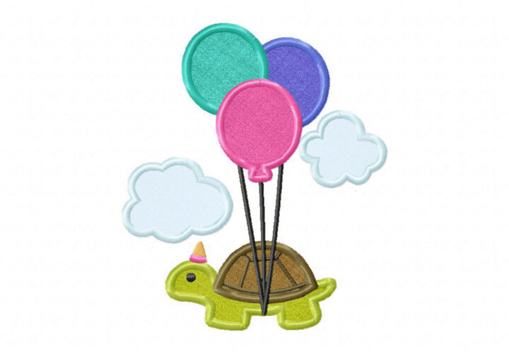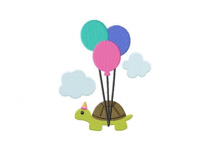 Birthday Balloon Turtle Embroidery Design