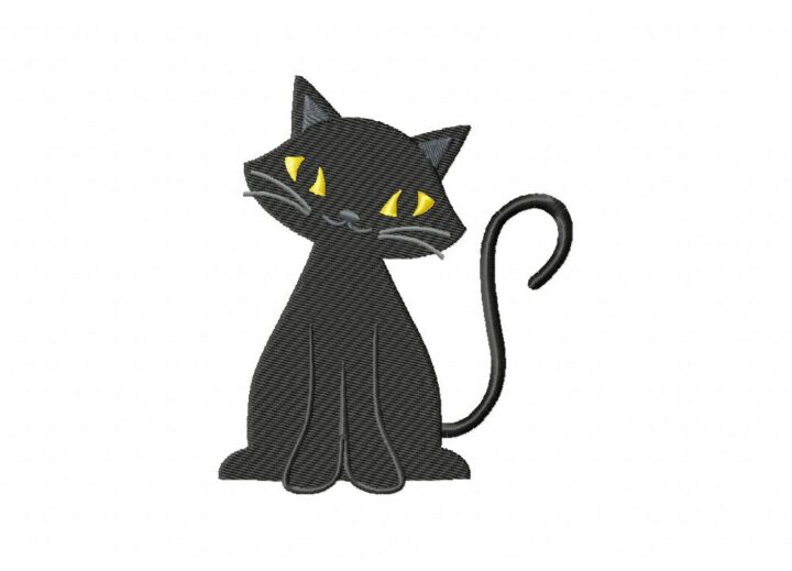 Black Cat Sit Front Embroidery Design