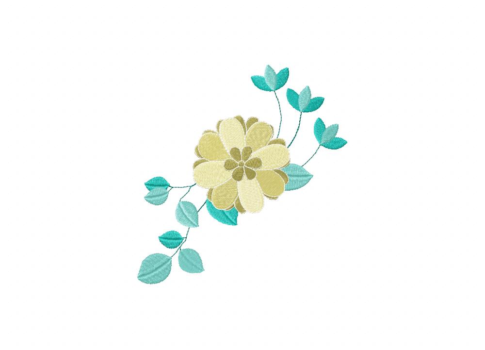 Blue Floral Stitched Embroidery Design