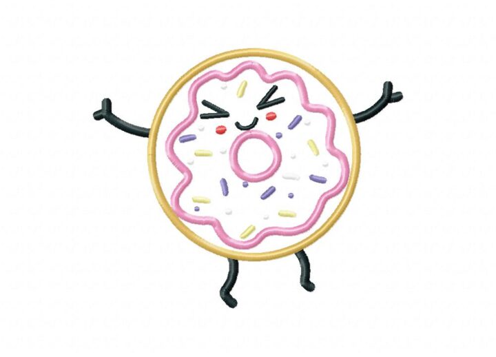 Cute Donut Includes both Applique and Stitch Embroidery Design