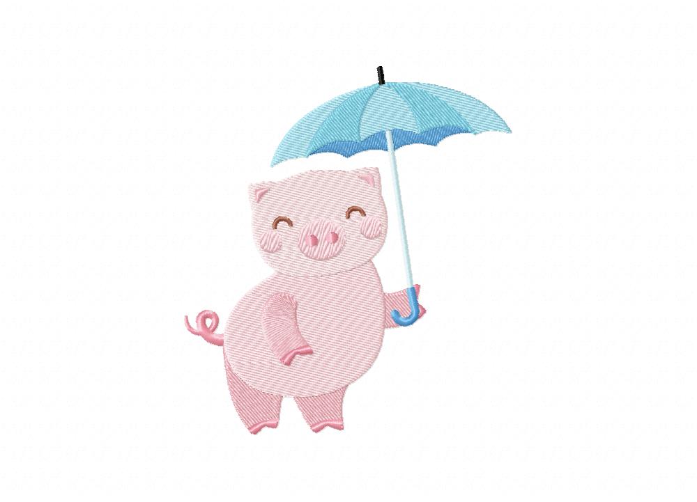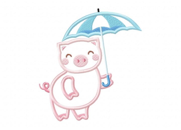 Cute Piggy in Umbrella Includes both Applique and Stitch Embroidery Design