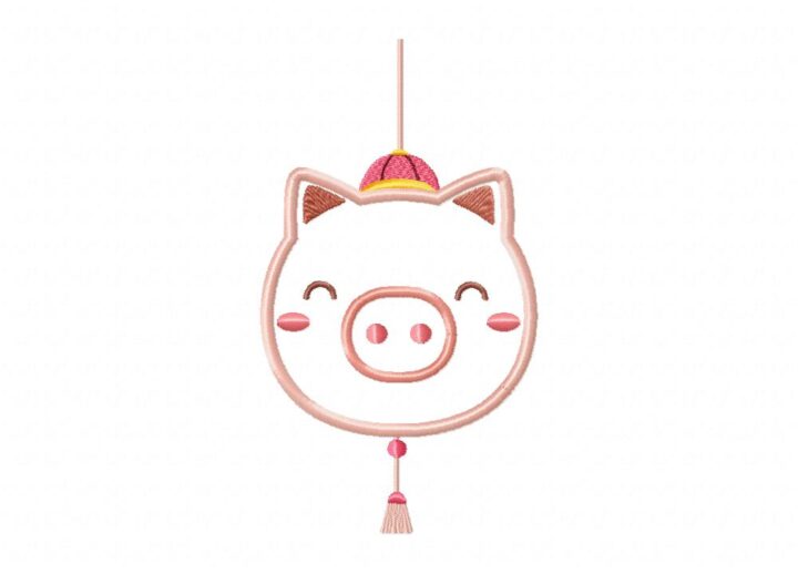 Cute Piggy Ornament Includes Both Applique and Stitch Embroidery Design
