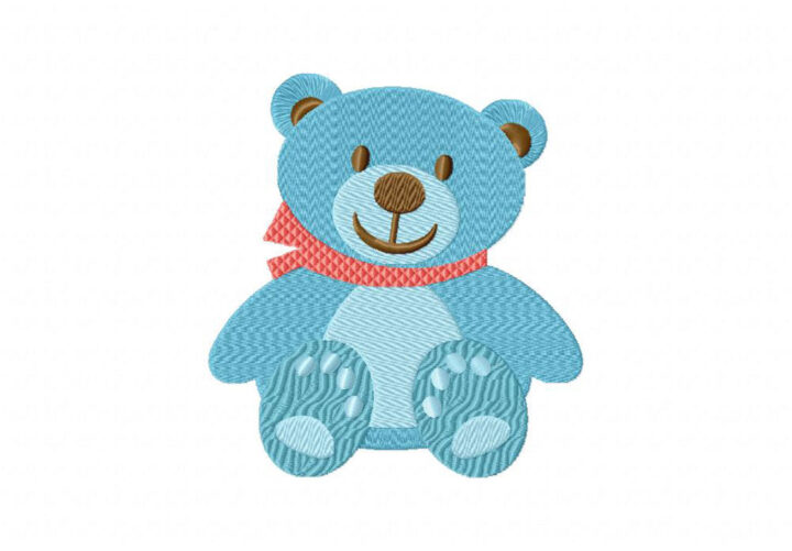 Delicate Blue Bear Includes Both Applique and Stitch Embroidery Design