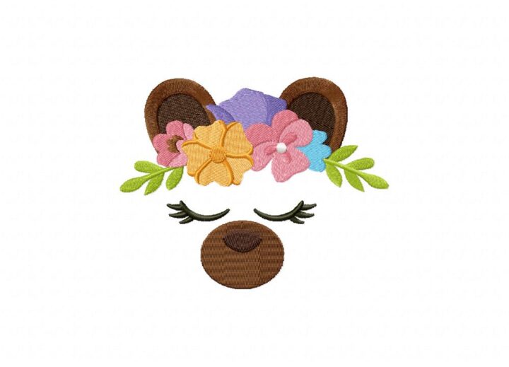 Floral Fauna Bear Stitched Embroidery Design