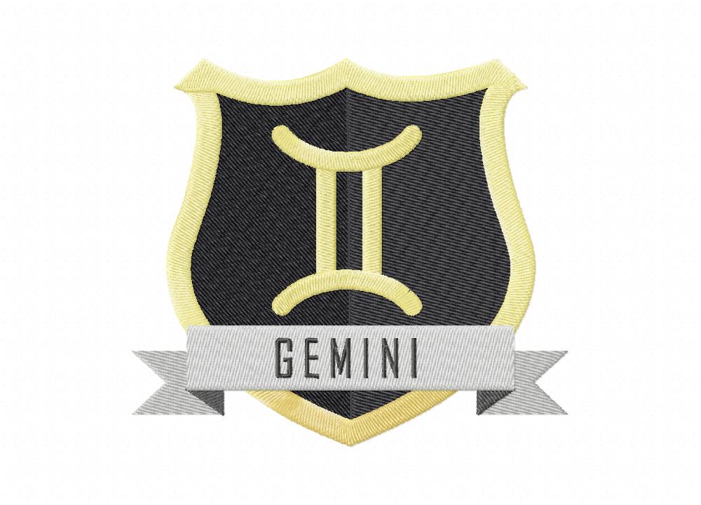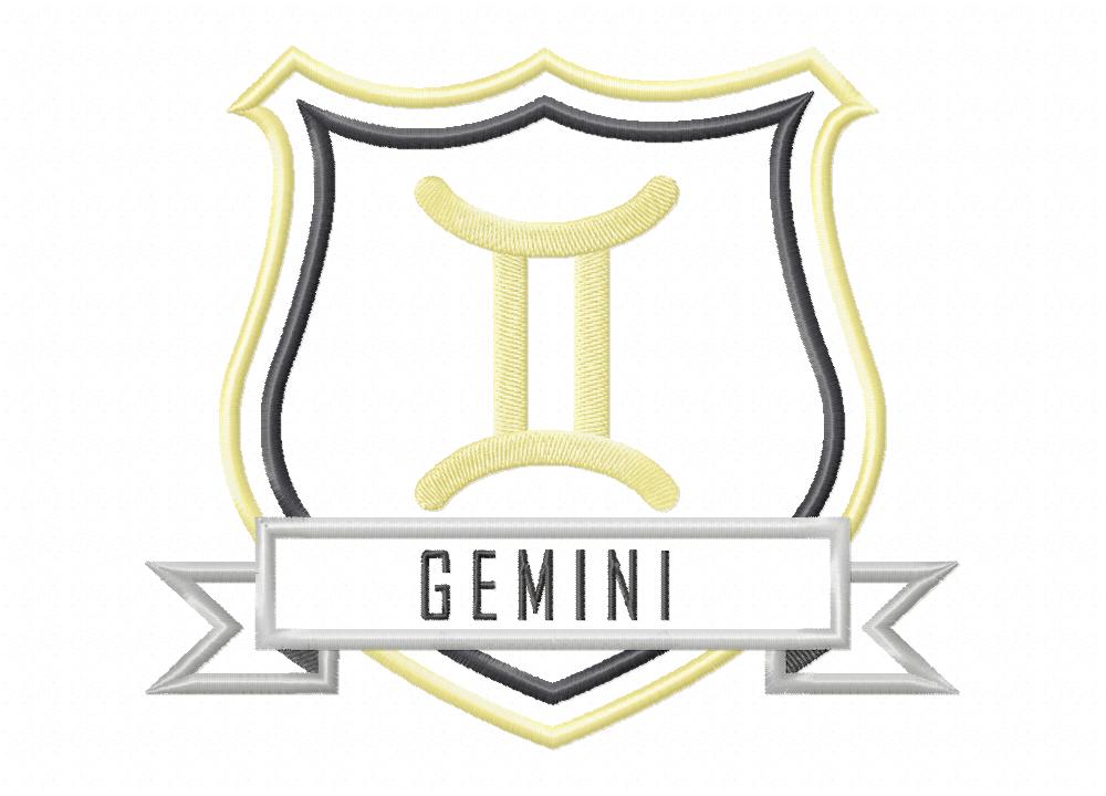 Gemini Badge Includes Stitch and Applique Embroidery Design