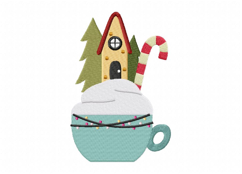 Gingerbread House on a Cup Embroidery Design