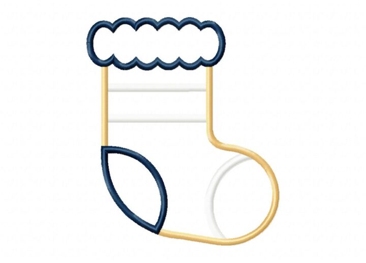Gold Christmas Sock Includes both Applique and Stitch Embroidery Design