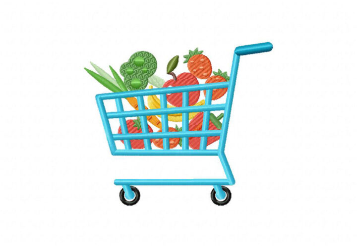 Grocery Cart with Veggies and Fruits Embroidery Design