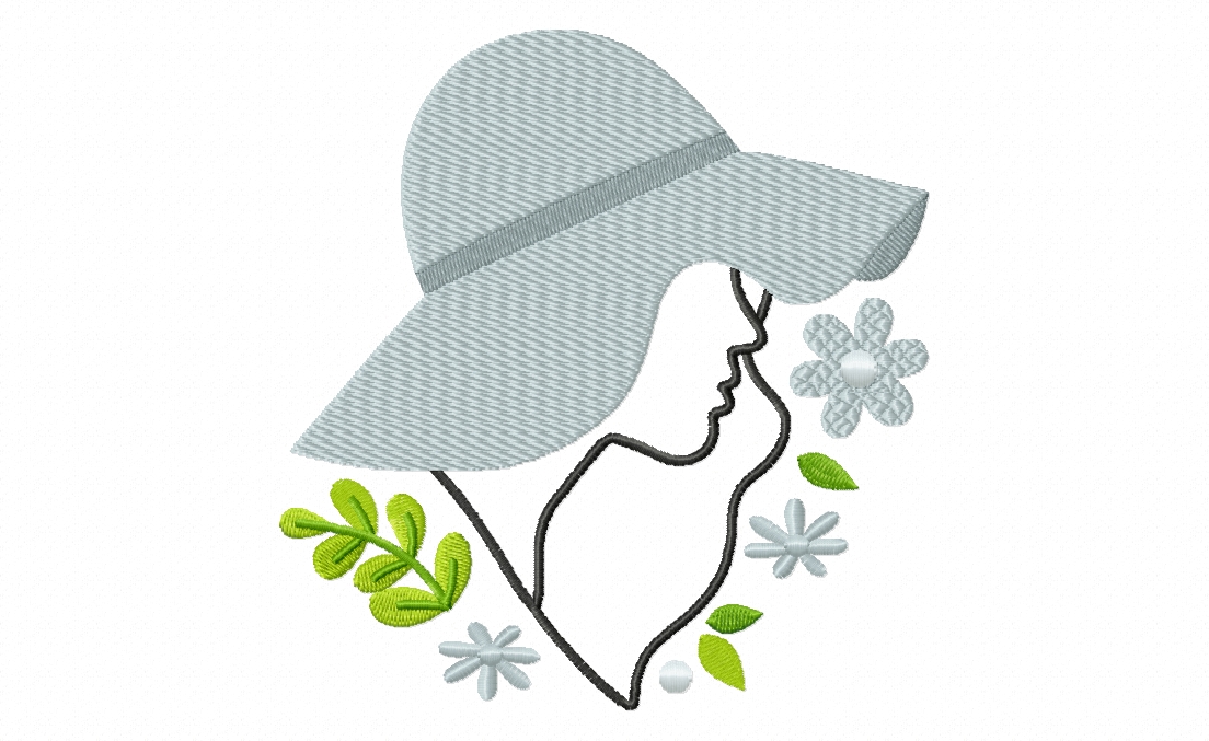 Light Blue Floral Hat Stitched Embroidery Design