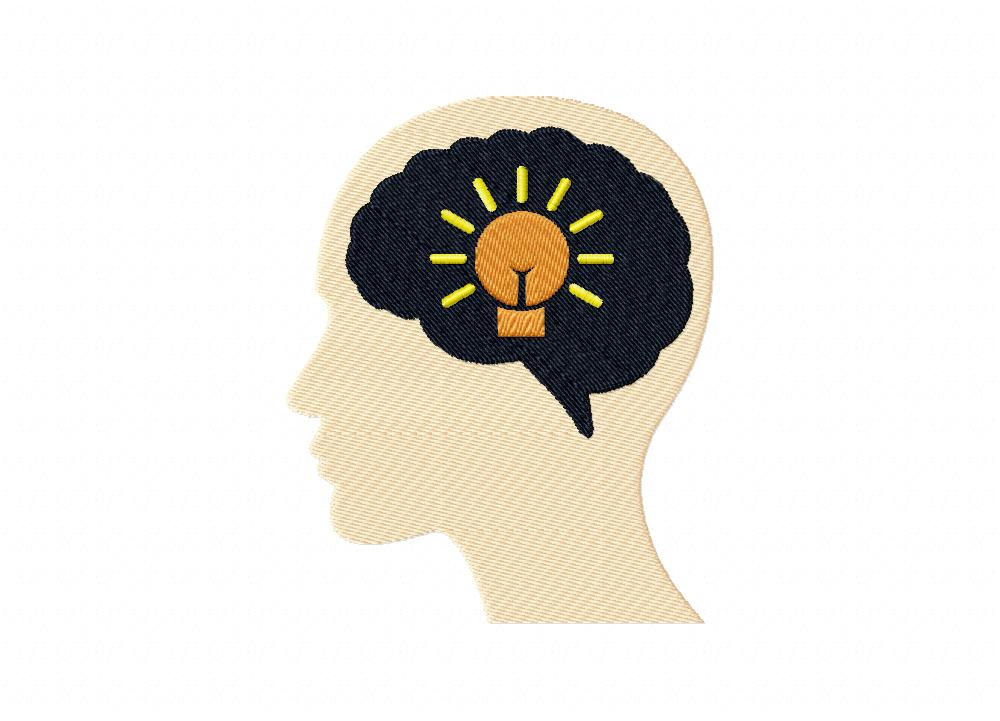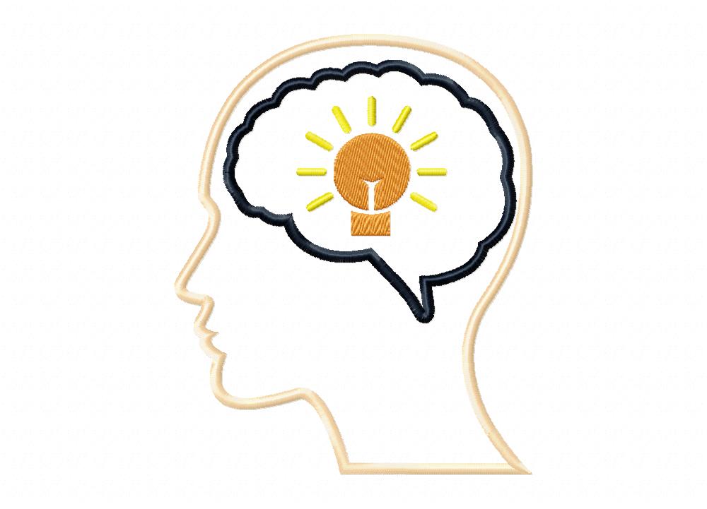 Open Mind with Icon for Idea Includes both Applique and Stitch Embroidery Design