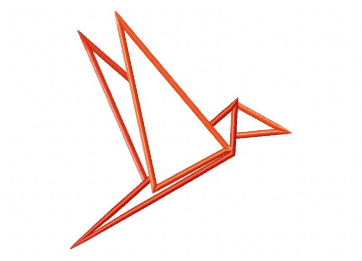 Orange Bird Paper Crane Includes both Applique and Stitch Embroidery Design