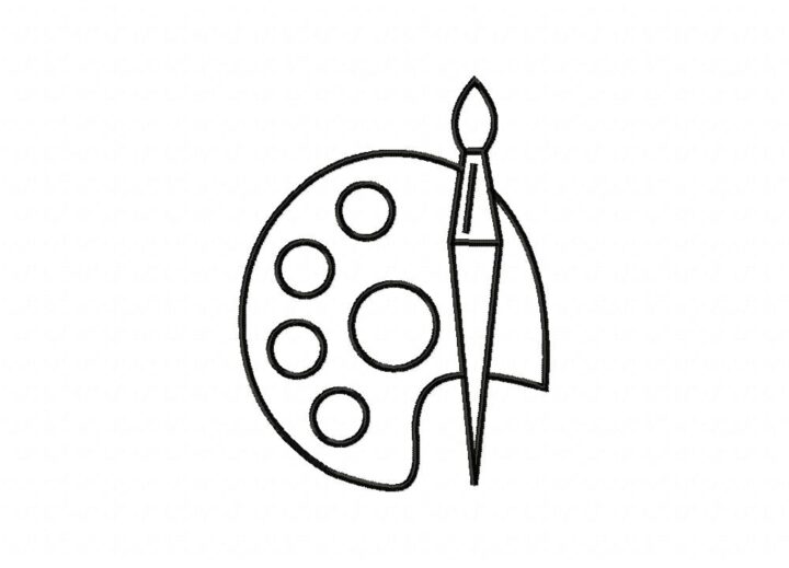 Paint Palette and Brush Outline Stitched Embroidery Design