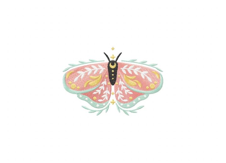 Pink Moth Embroidery Design