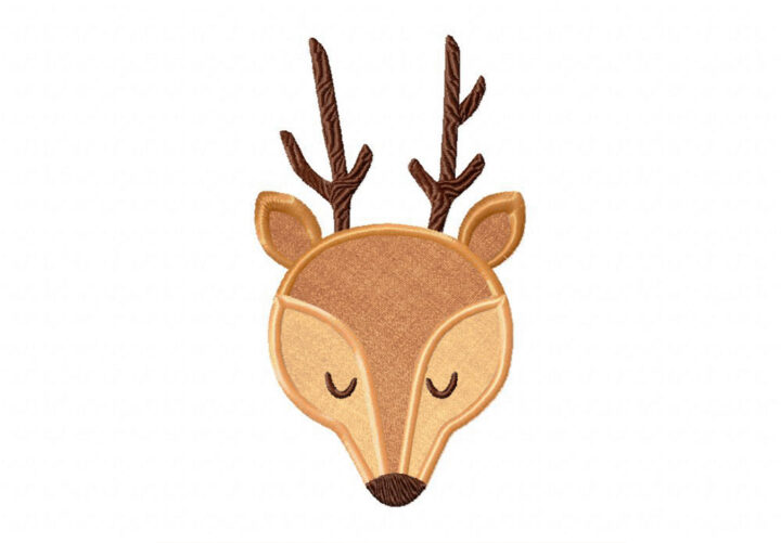 Reindeer Head Includes Both Applique and Stitch Embroidery Design