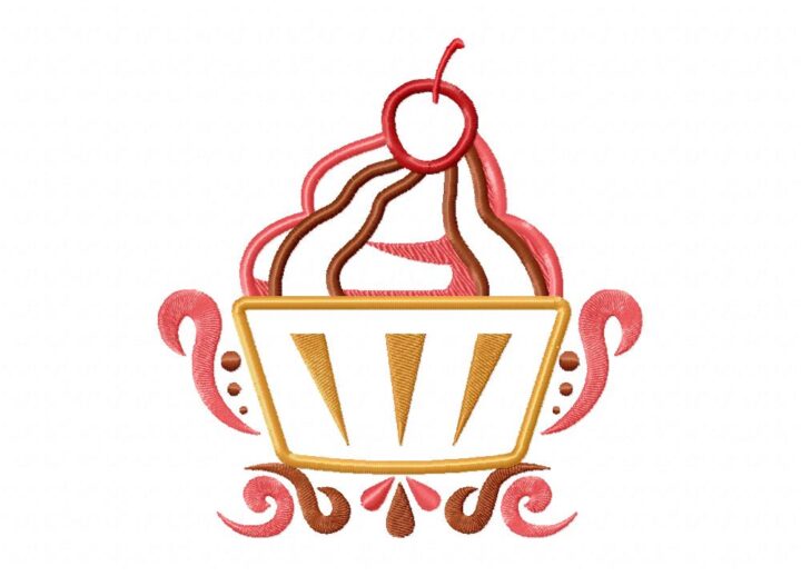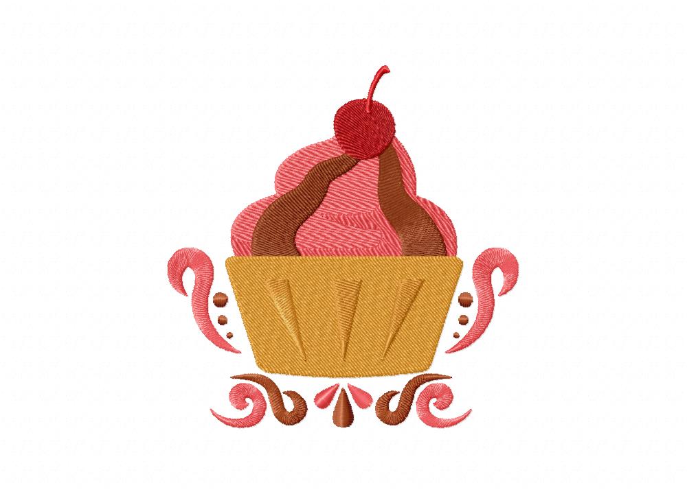 Strawberry and Chocolate Cupcake with Cherry Includes Both Applique and Stitch Embroidery Design