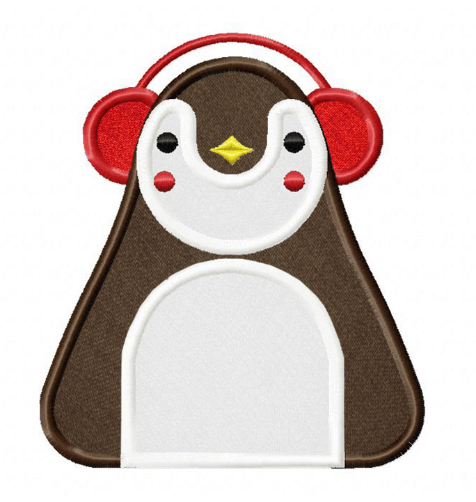 Sweet Christmas Penguin Includes both Applique and Stitch Embroidery Design