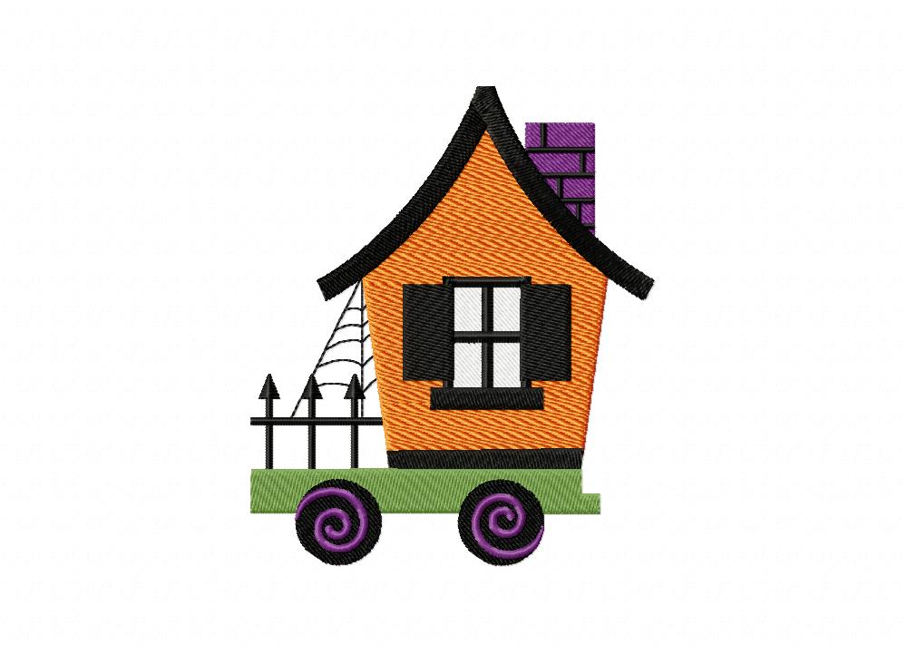 Trick Or Treat Train Haunted House Embroidery Design