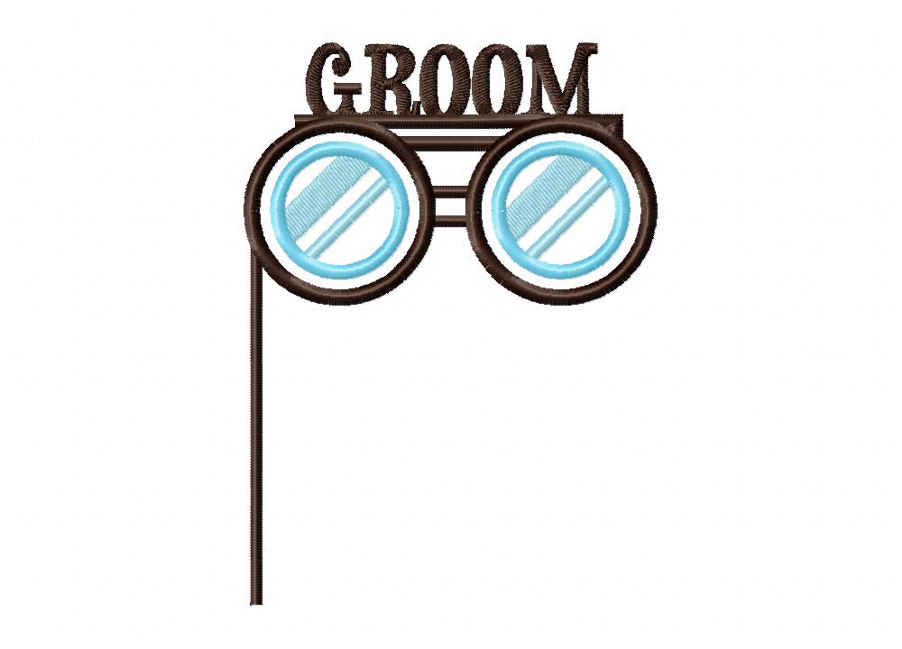 Wedding Photo booth Groom Glasses both Applique and Stitch Embroidery Design