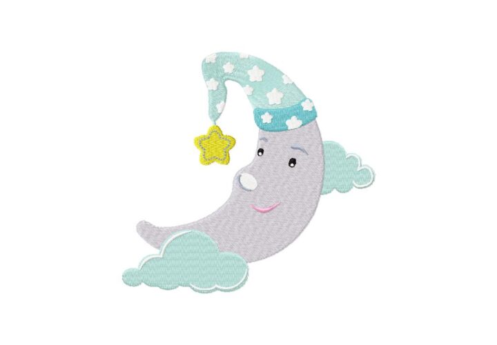The Goodnight Moon Machine Embroidery Design includes PDF color sheet and all of the following sizes: 2.5″ 3″ 3.5″ 4″ 4.5″ 5″ & 5.5″