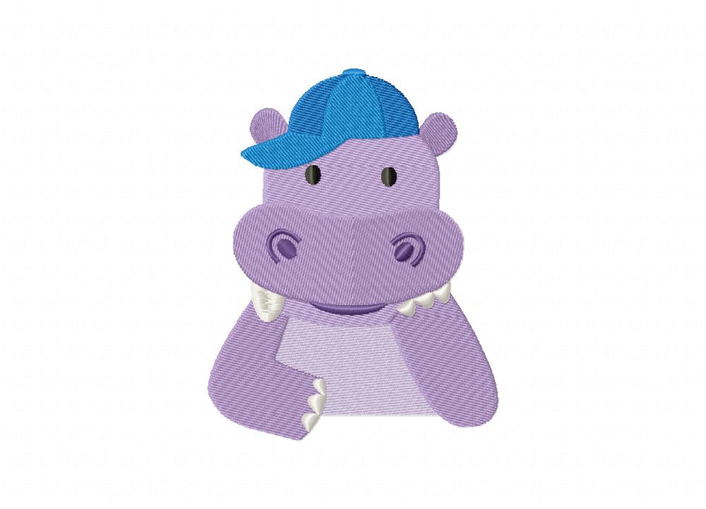 Make it a happy day when you stitch out this Happy Hippo In Blue Cap machine embroidery design!