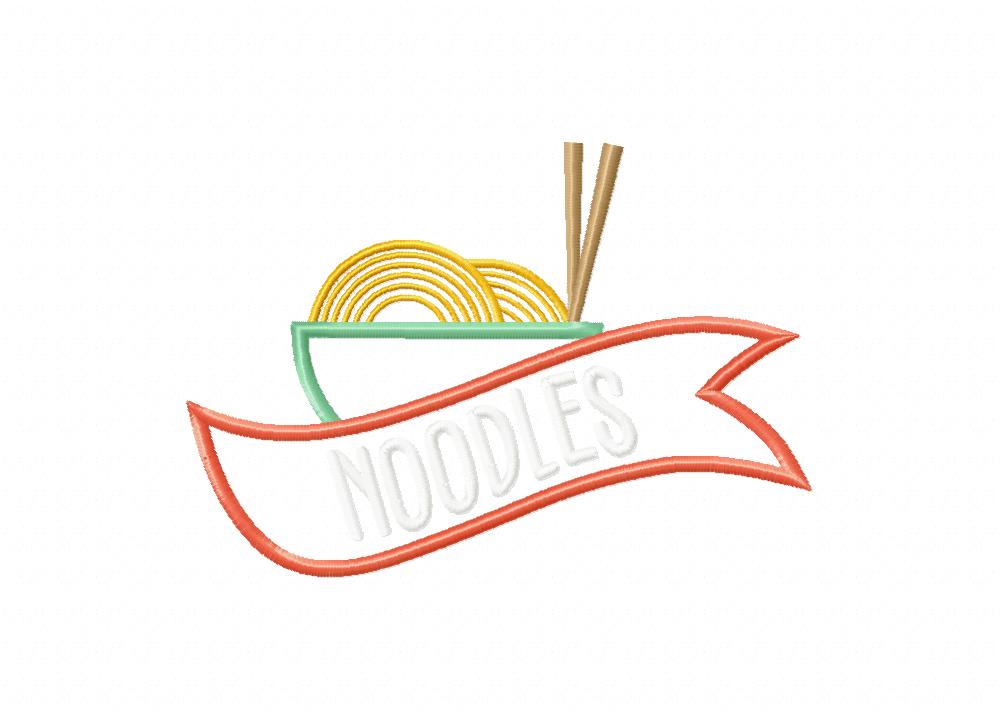 Hot Noodles with Label Includes both Applique and Stitch Embroidery Design
