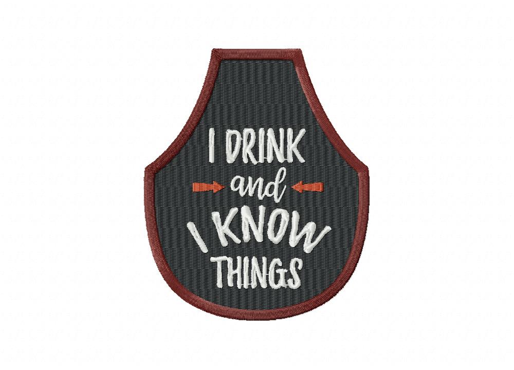 I Drink And I Know Things Bottle Apron Stitched Embroidery Design