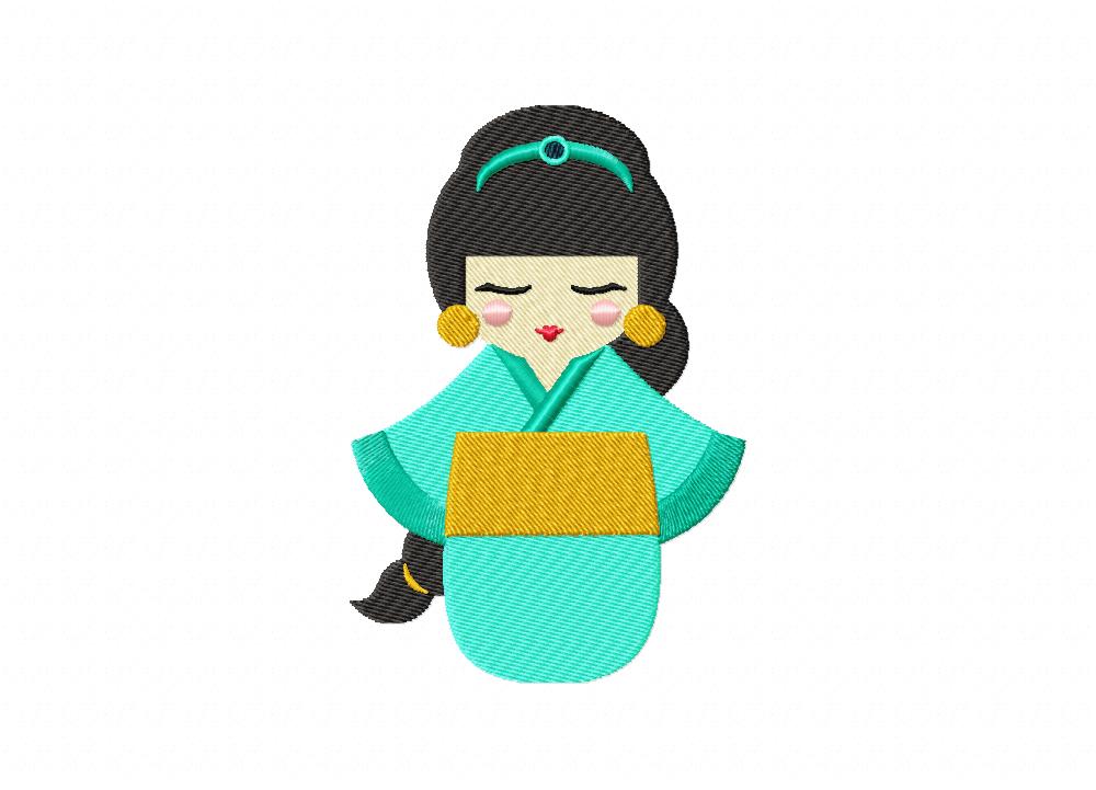 Make your projects beautiful like a princess with this Jasmine Kokeshi Doll machine embroidery design!
