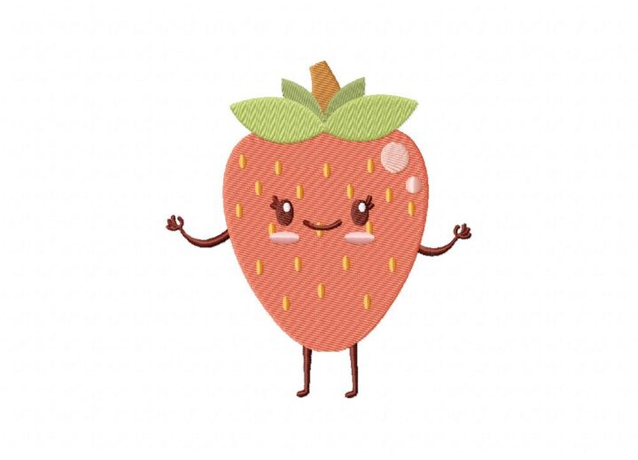 Kawaii Strawberry Character Embroidery Design