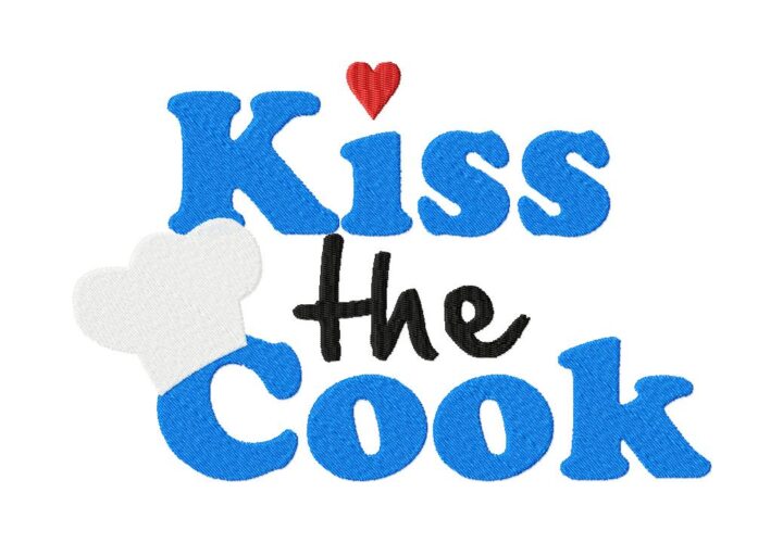 Show the chef your appreciation with this Kiss the Cook machine embroidery design