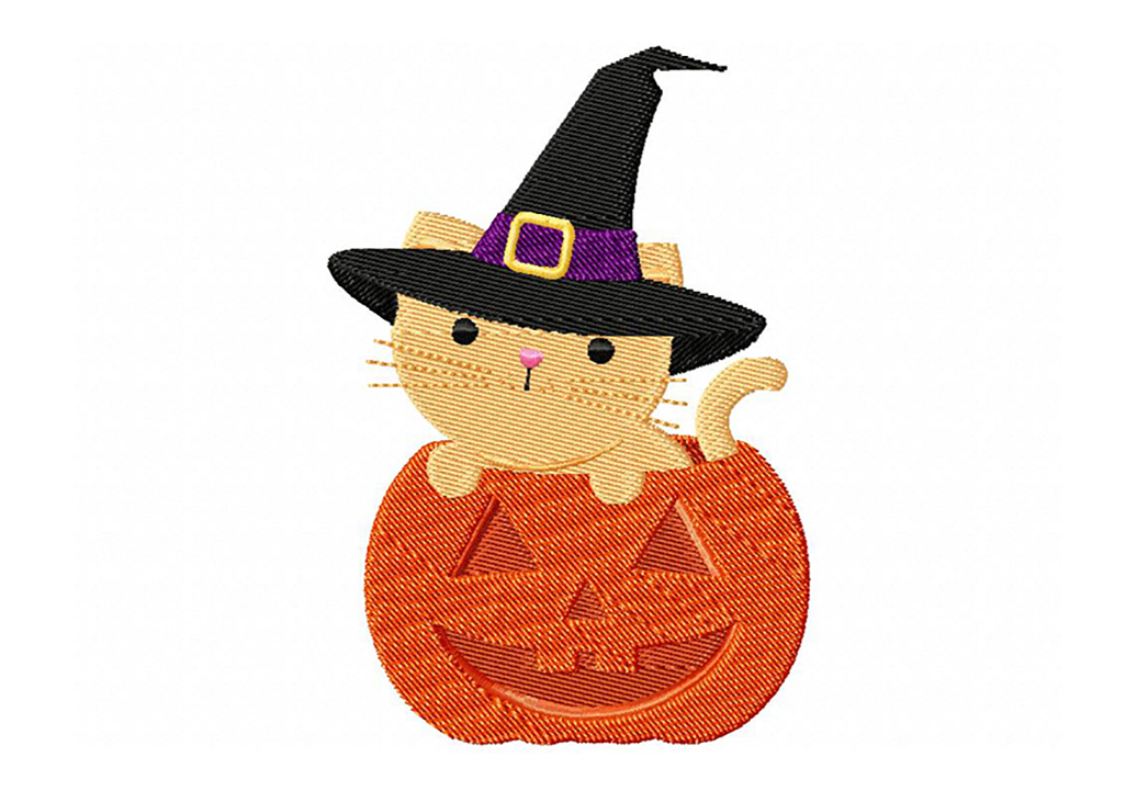 Stitch out this Kitty In Jack O’ Lanterns machine embroidery design and add a unique cuteness to you Halloween project!