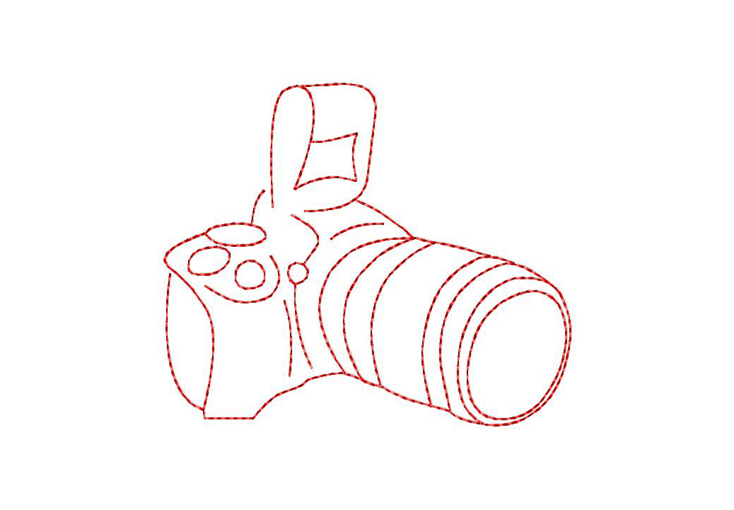 This Linework or Redwork Camera design stitches light and quick making it the perfect design for any fabric from Knits to Upholstry!