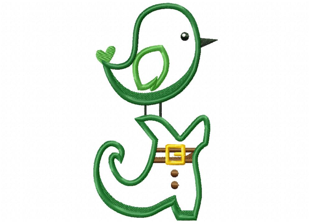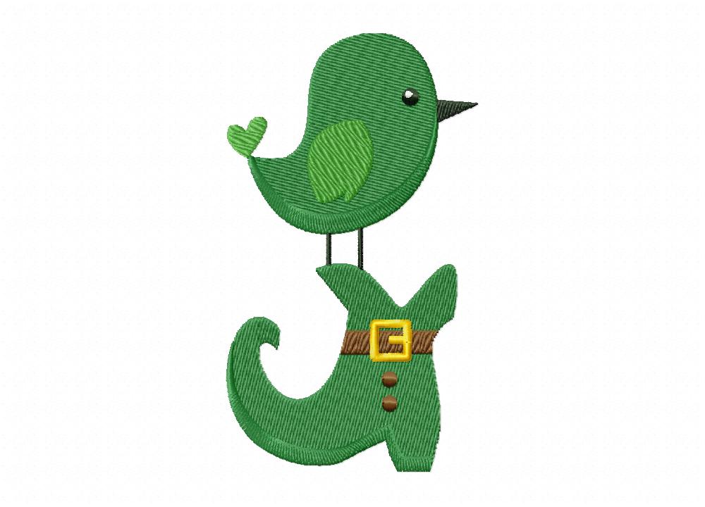 Lucky Bird in a Shoe both Stitch and Applique Embroidery Design