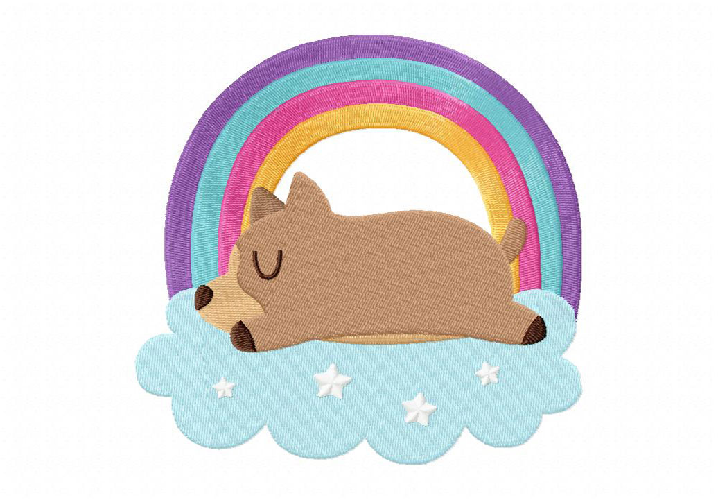 Puppy Sleepin’ on Rainbow Embroidery Design