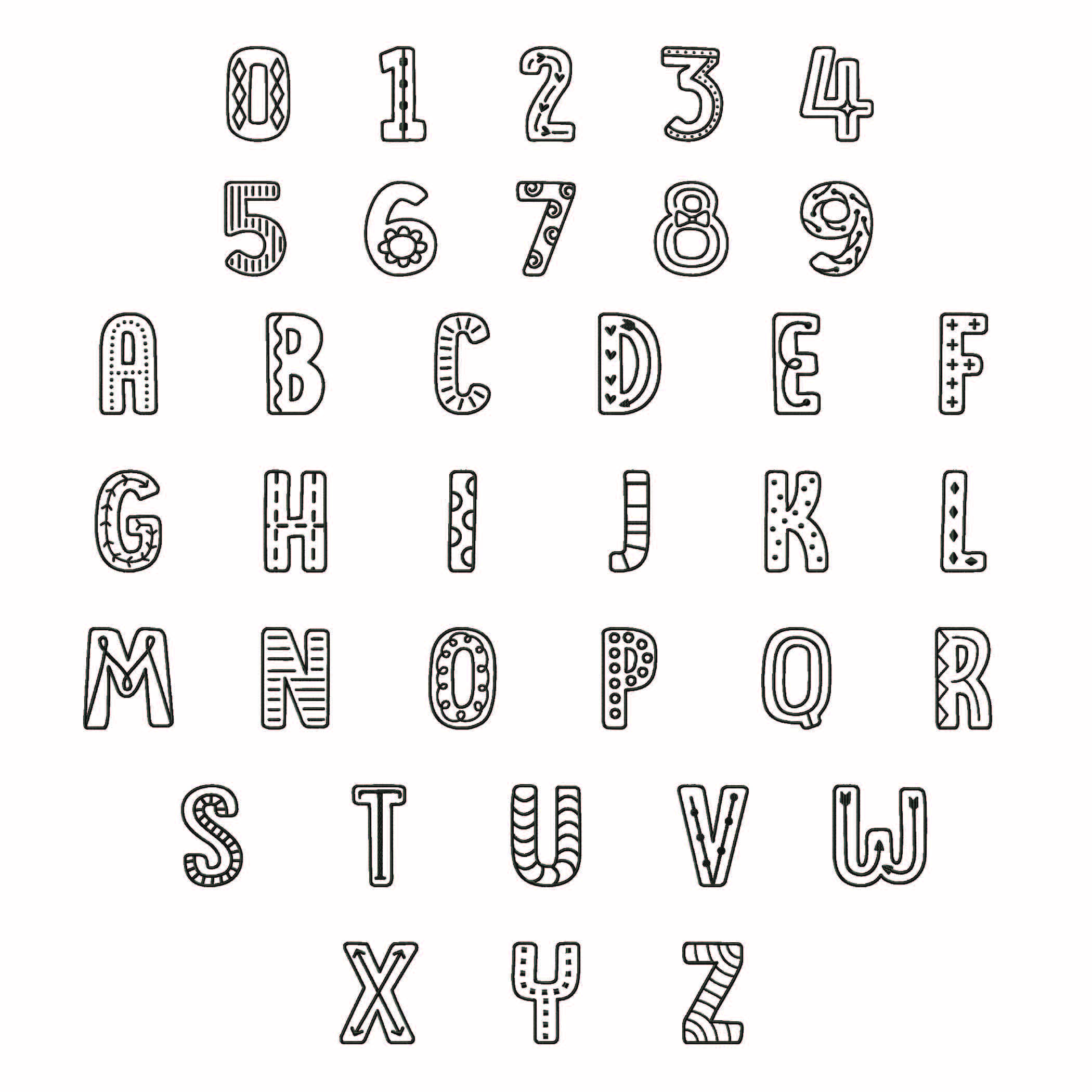 Quirky Letters and Numbers Embroidery Design