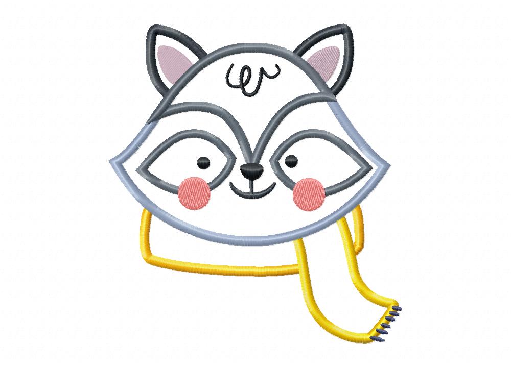 Raccoon with Scarf Embroidery Design