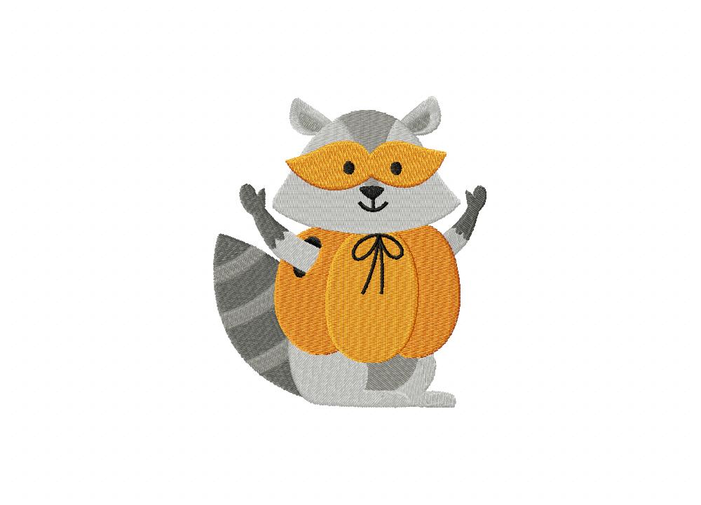Racoon in Pumpkin Costume Embroidery Design