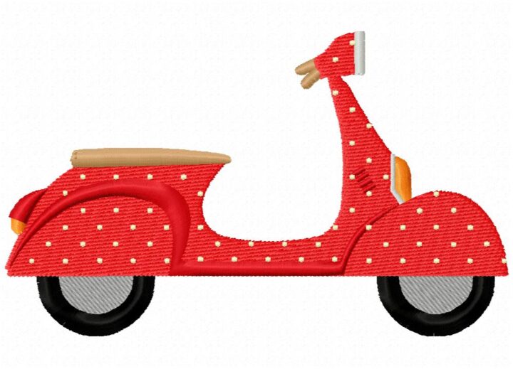 Retro Scooter Polka Dot Stitched Embroidery Design