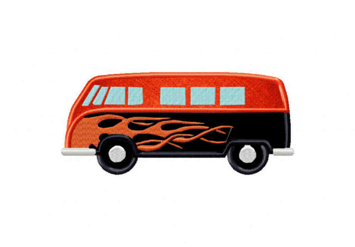 Stitch out this retro van flames machine embroidery design and make your projects bold!