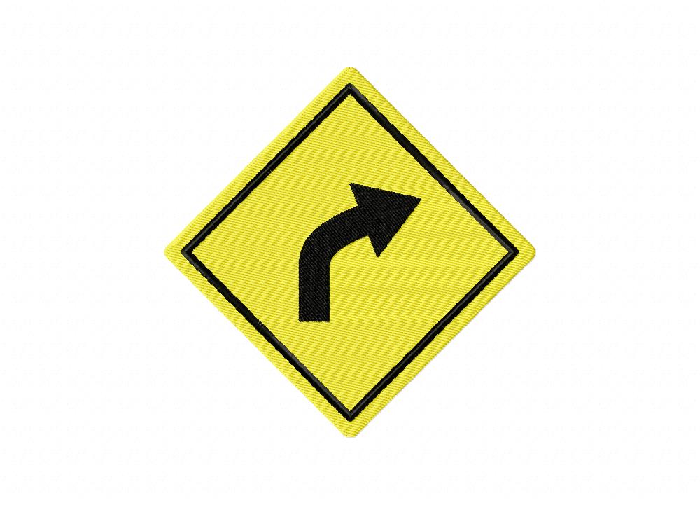 Be warned with this Road Sign Curve Right machine embroidery design!