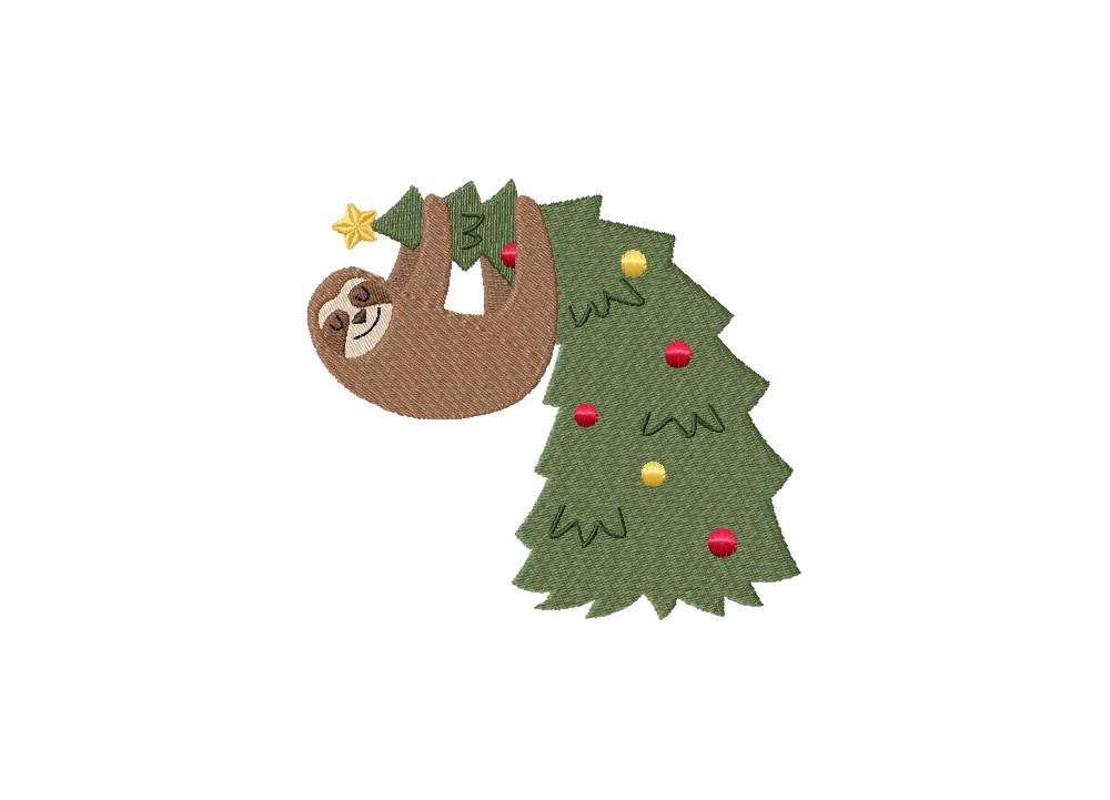 Sloth On Christmas Tree Embroidery Design
