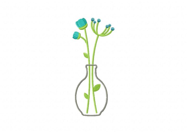 Make your projects beautiful with this Teal Flower Stem In Bottle machine embroidery design!