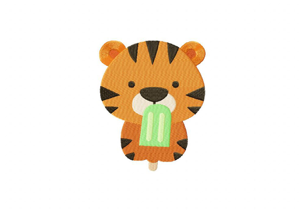 Tiger with Popsicle Embroidery Design