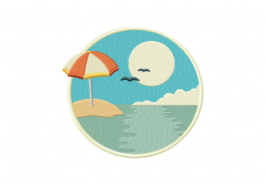 Vintage Beach with Birds View Embroidery Design